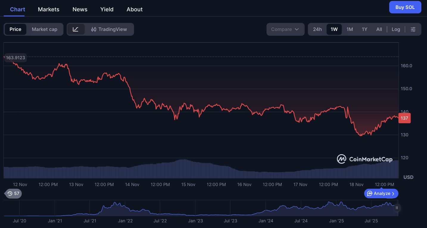 Even with big ETFs landing back-to-back, SOL fell to $131 as the market deleveraged.